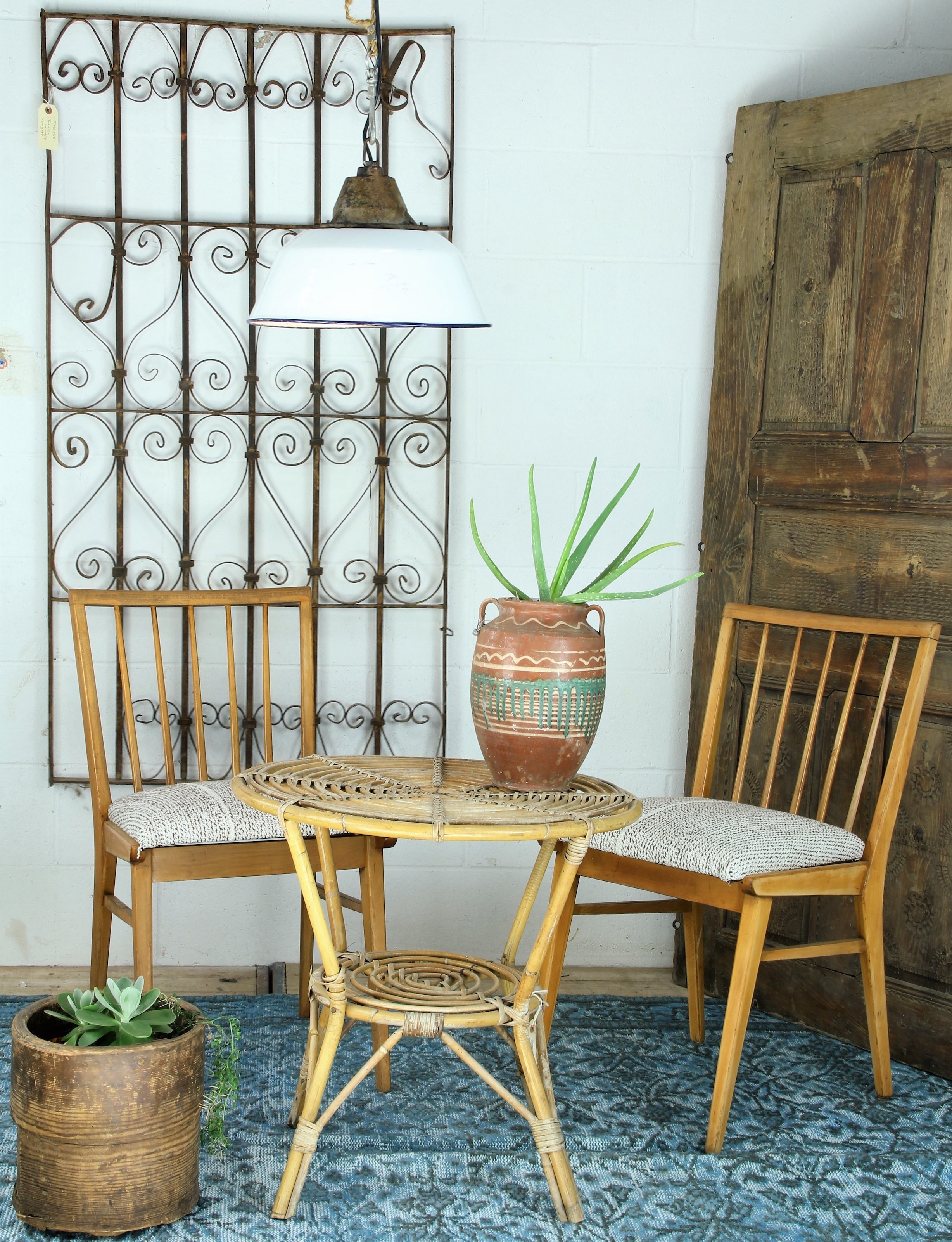 All of the wood on these chairs is original, white the seats have been reupholstered with hand-woven, vintage Turkish fabrics.  These are vintage goods, so some models may show slight signs of use; however, our Nomadic Trading team will work to provide the best options available.  For information regarding larger orders please email.