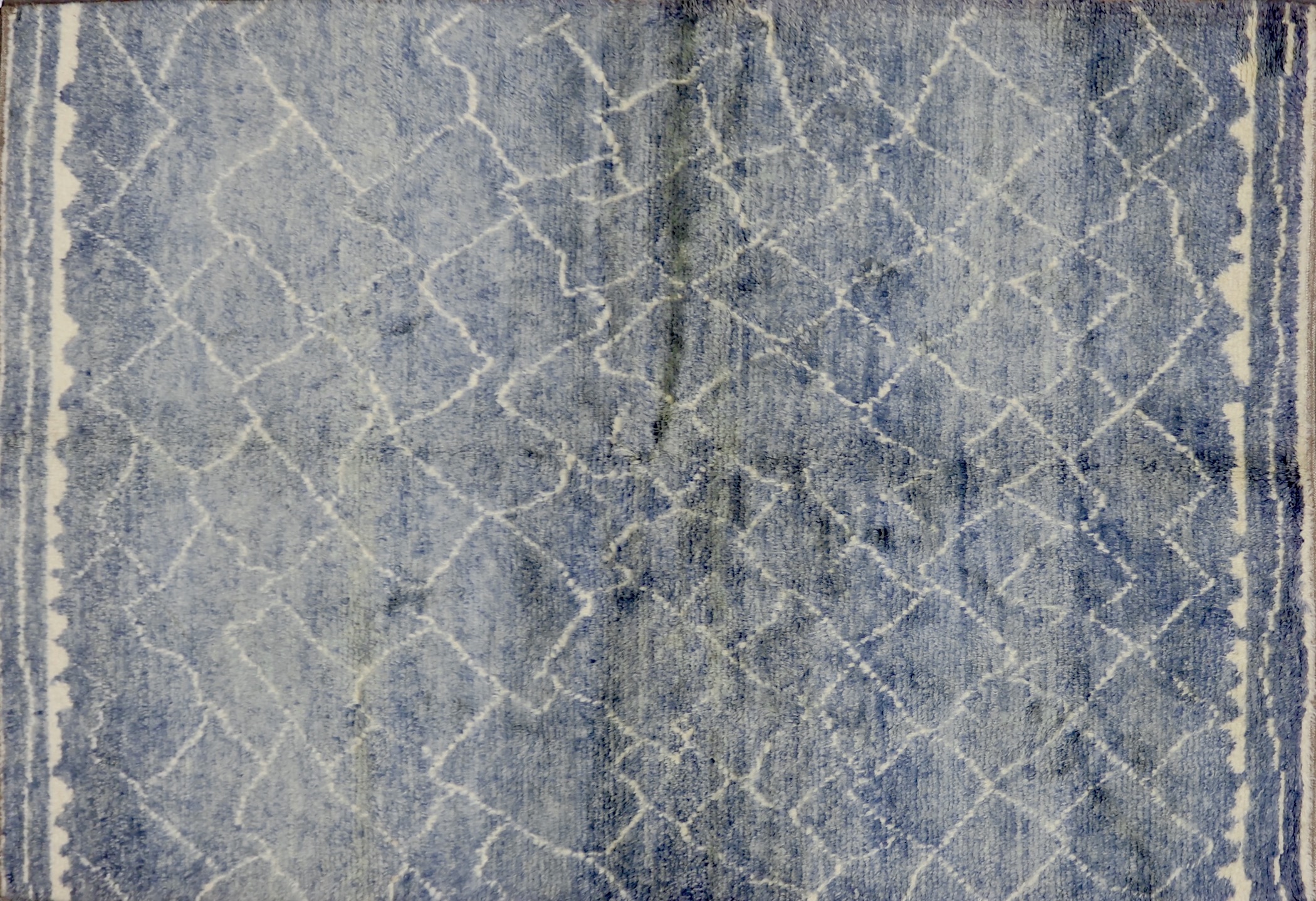 Because of the size of our inventory, we are unable to keep rugs open and on display in store. Please note that slight shadows or differences in color may be shown in photographs due to how rugs are folded for storage. Any creases will surely fall out once the rug has been brushed and left open for a bit of time. We apologize for any inconsistency in appearance online.