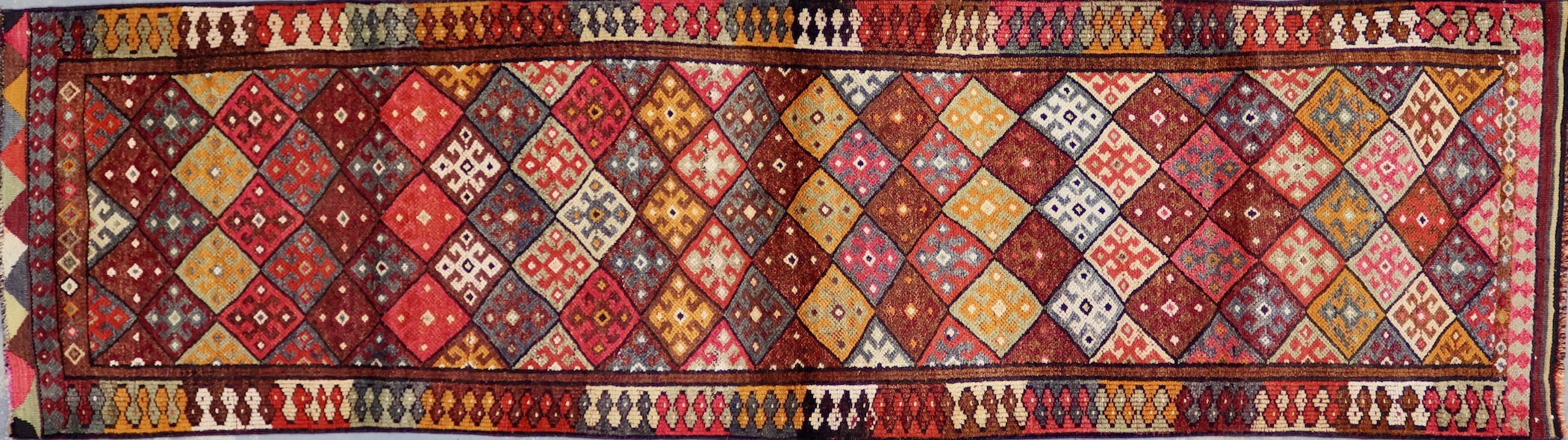 CR7956 VINTAGE 1970s KURDISH HERKI RUNNER 3'4" X 11'11"