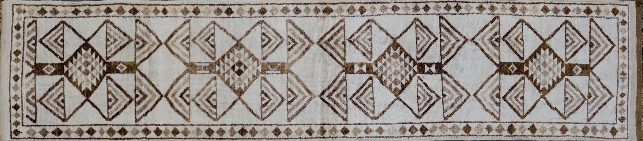 This runner is a vintage Kurdish tribal runner from the Hakkari region of Southeastern Turkey. The craftsmanship of this piece is exquisite, as it is hand-knotted with handspun wool and dyed with natural root and floral pigments. This piece is rich in both aesthetic and cultural value, as these pieces come from a region wrought with political unrest and violence, thus making them widely unavailable to the rest of the world for many years.