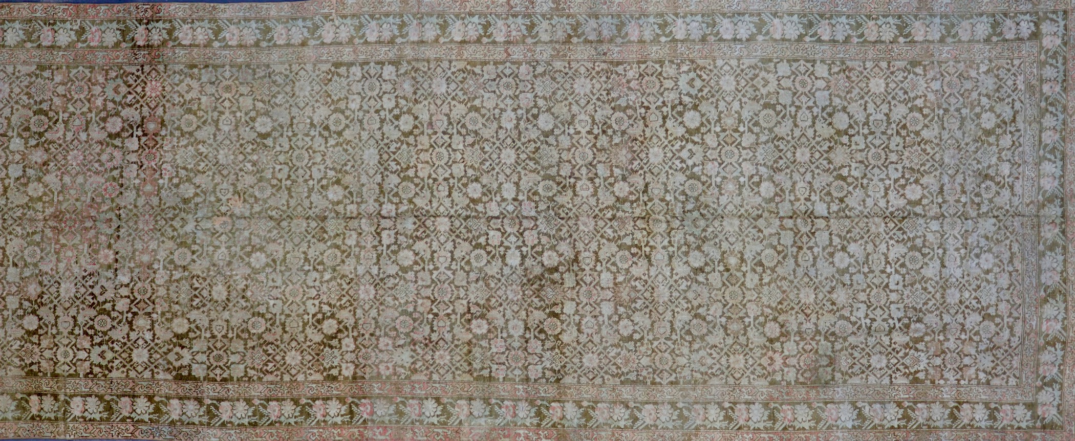 This rug is a vintage, highly sought-after, hand-knotted piece from the Malayer Region of Iran. Malayer rugs are recognized for their use of high-quality, durable wool and spontaneous designs with influences from tribes, nomadic groups, and larger rug-production cities. With most Malayers woven in deep, rich color, this piece is very unique with its more subdued color palette. This carpet is in excellent condition and is sure to last for years to come.
