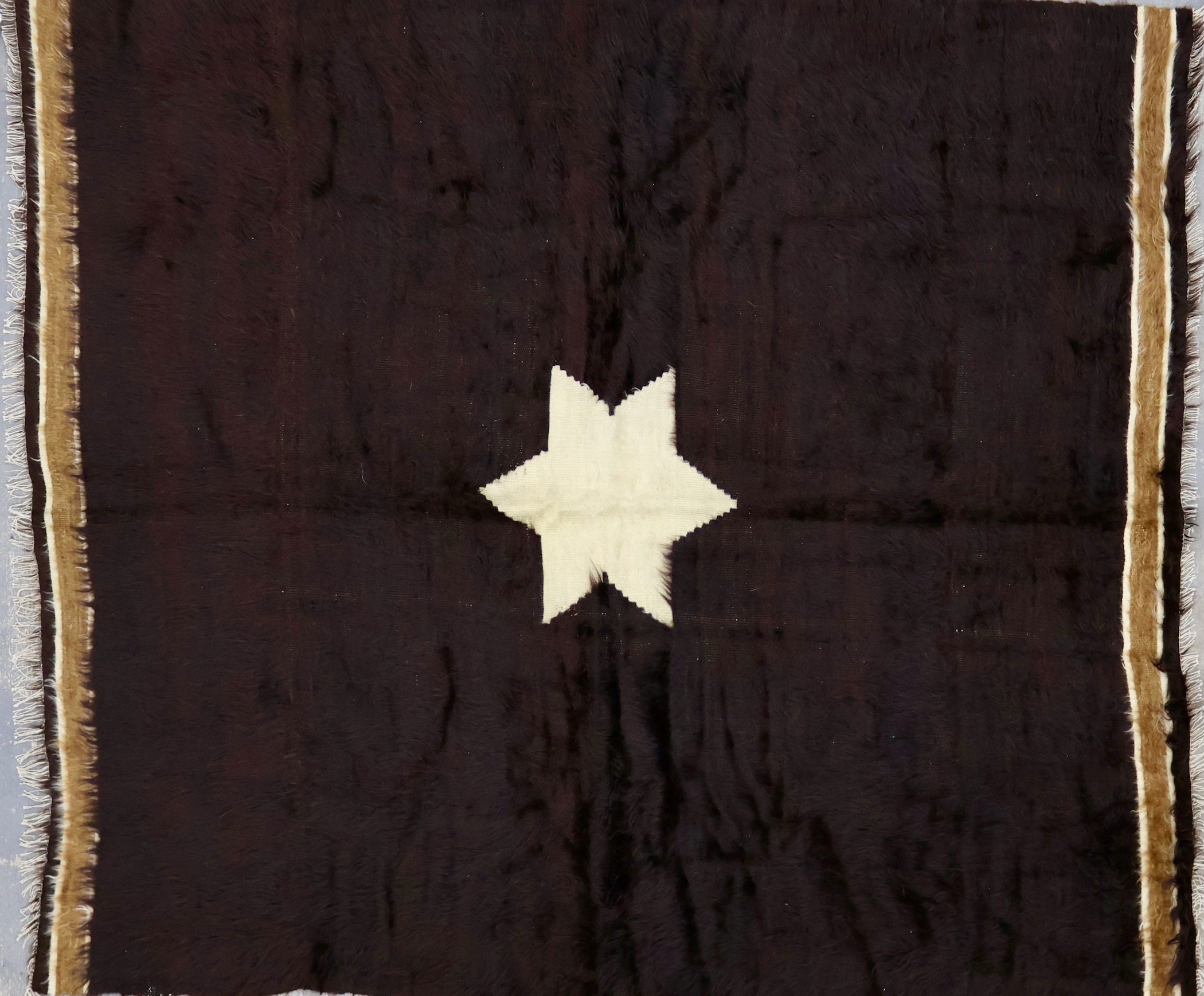 This rug is a vintage siirt piece from Turkey. Siirt fabric is made from the long, silky mohair wool from the angora goat. This undyed material makes for a piece with a very organically beautiful aesthetic.