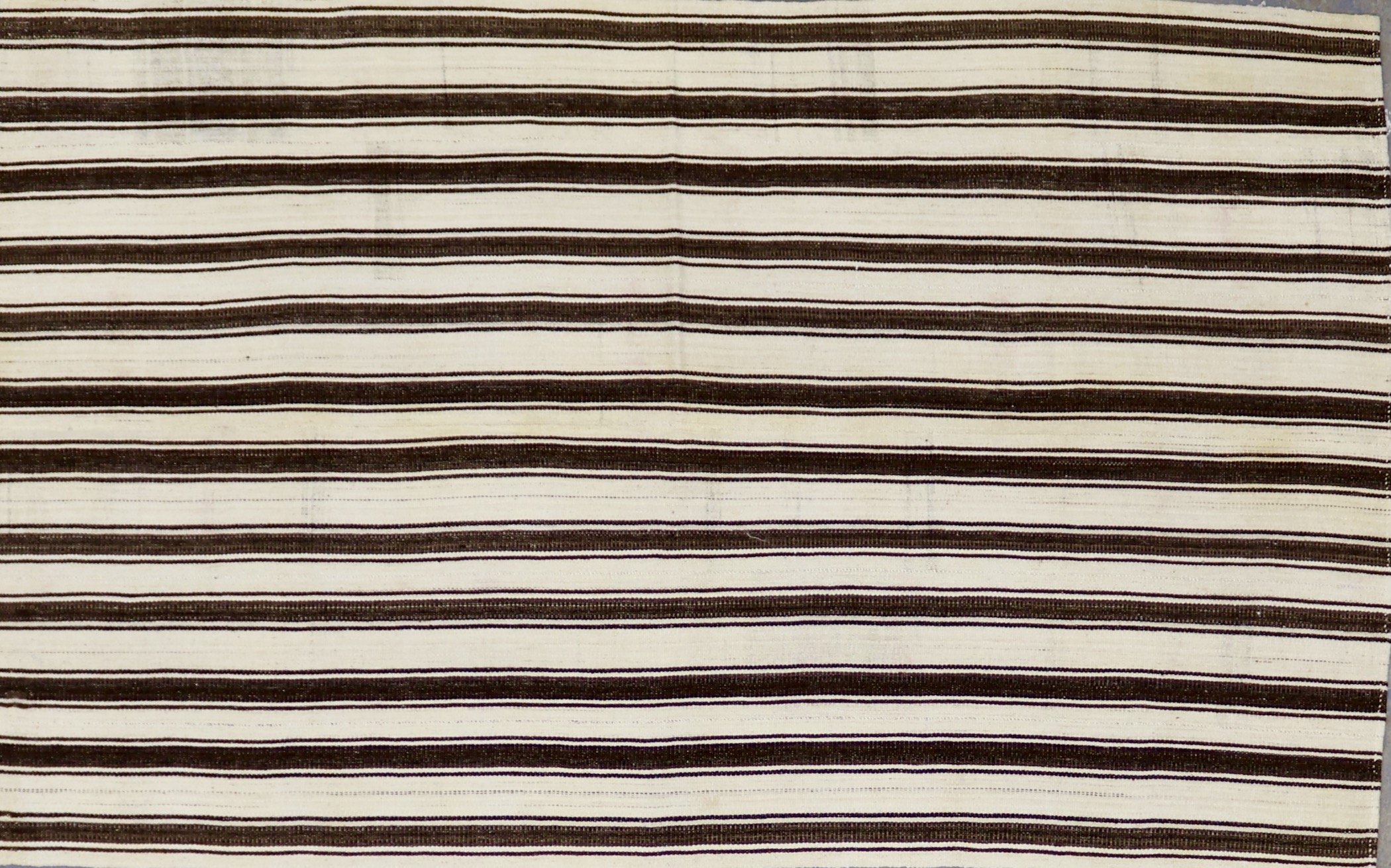 This rug is a vintage flatweave kilim piece from Turkey. Kilim weaving is a centuries-old technique that makes for flatweave, no-pile pieces that are both aesthetically appealing and functional. Traditionally handmade in countries of the former Persian Empire, kilims are the basis of many different styles born from the region. This piece in paticular is from the Konya region of Turkey, an area known for its craftsmanship of rugs and textiles. No dyes or chemicals were used in the construction of this piece, as it was originally used as a minimalist room divider, tent wall or floor covering. The high quality, all-natural appearance of the sheep wool makes for a very organically stunning piece.