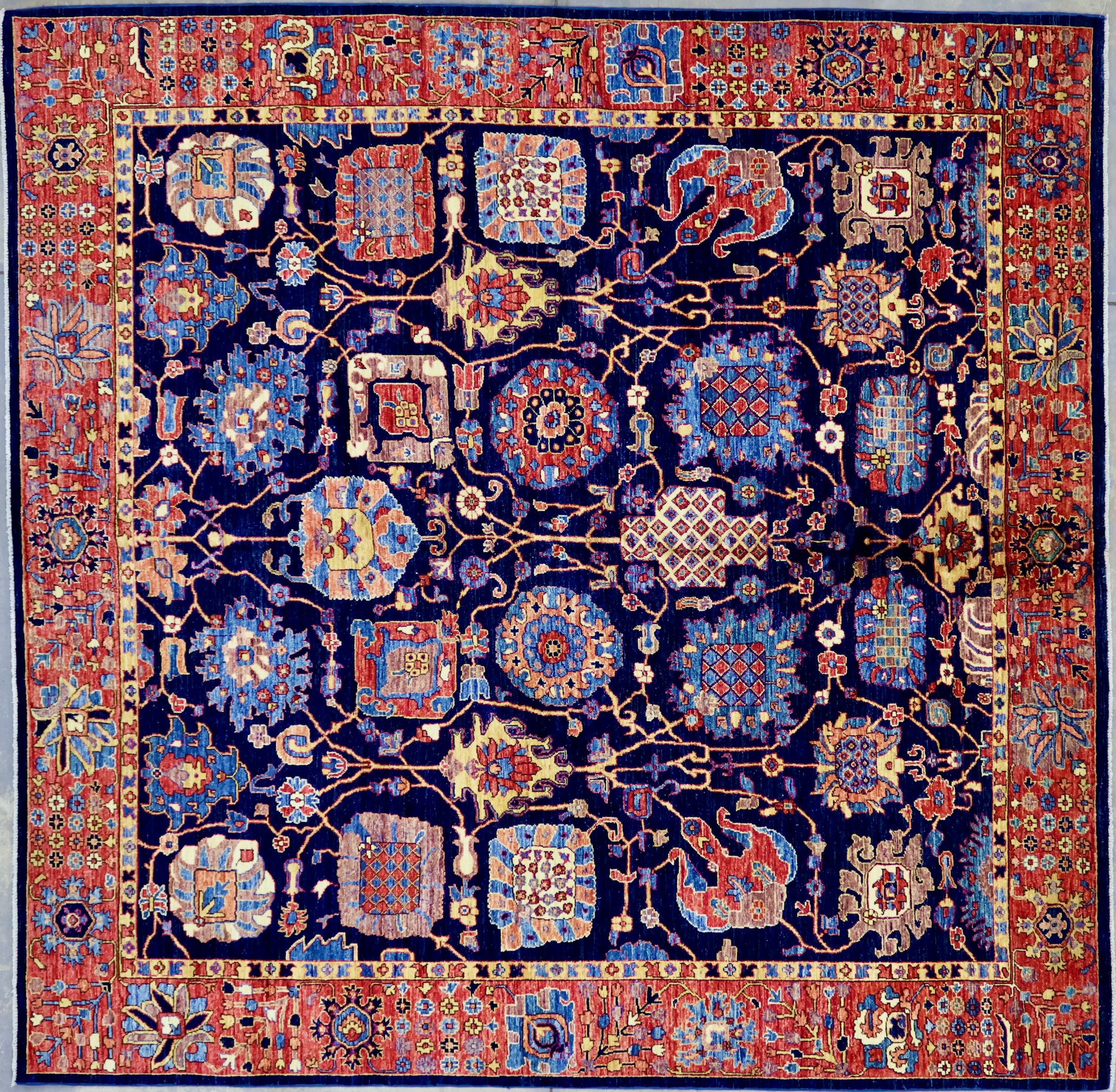 This recently made, Mahal design piece comes from Pakistan. Made with all-natural root and floral dyes, this rug has an antique look, but the vibrance and reliability of a modern piece.