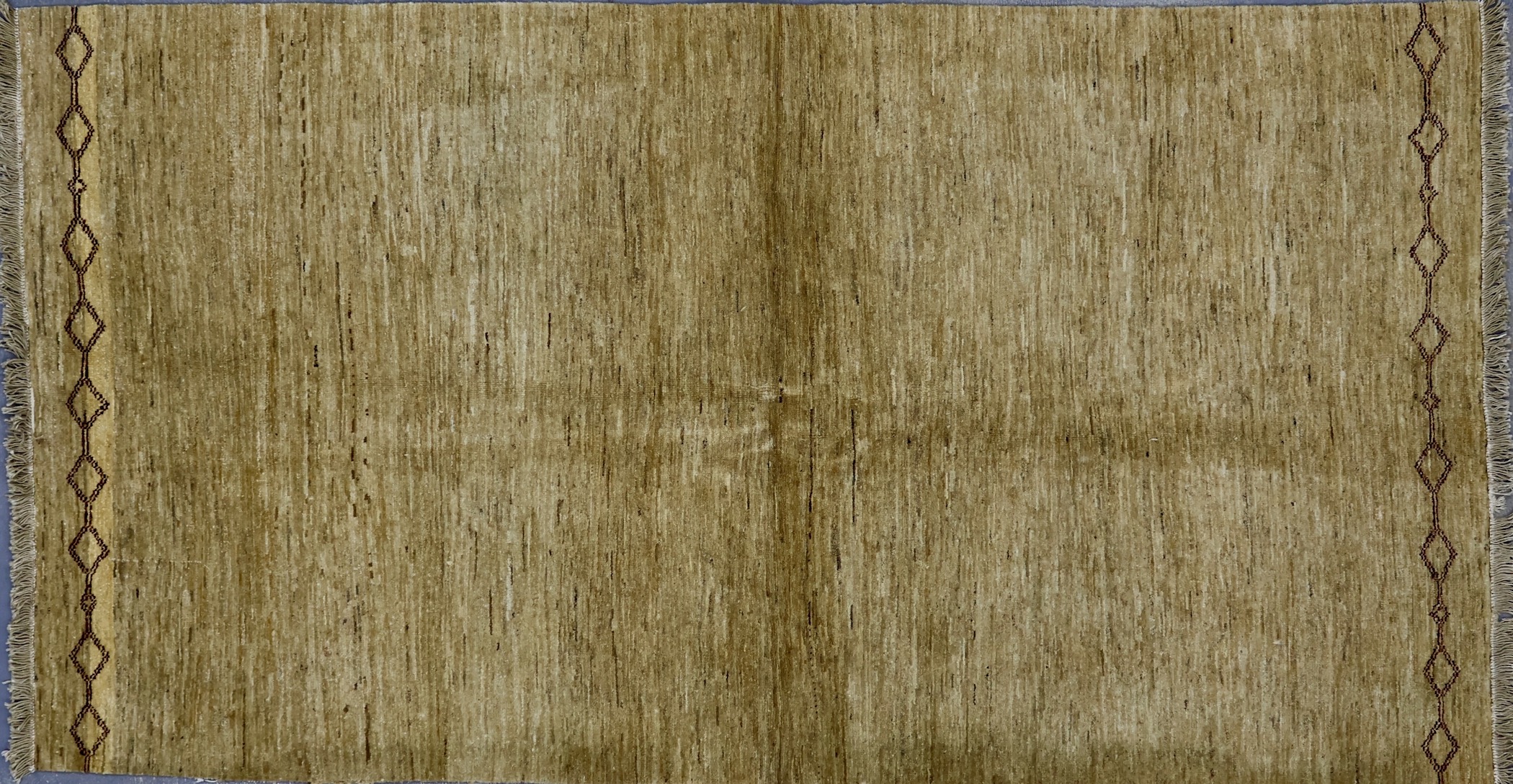 This rug is a vintage piece from the Gabbeh tribal and nomadic group of Afghanistan. Known for their ultra-thick piles, use of natural dyes, and minimalistic color palettes with striations of varying hues, Gabbeh rugs are exquite in their craftsmanship.