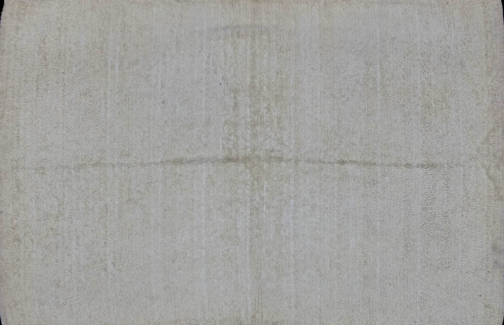 This rug is a vintage siirt piece from Turkey. Siirt fabric is made from the long, silky mohair wool from the angora goat. This undyed material makes for a piece with a very organically beautiful aesthetic. Though originally woven as a blanket, this piece is multifunctional and can be used as a rug.