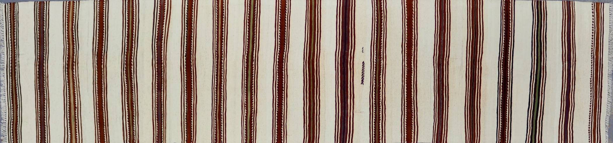 This rug is a vintage kilim piece from Konya, Turkey. Kilim weaving is a centuries-old technique that makes for flatweave, no-pile pieces that are both aesthetically appealing and functional. Traditionally handmade in countries of the former Persian Empire, kilims are the basis of many different styles born from the region. This piece is relatively simple in its appearance but is one of high craftsmanship.