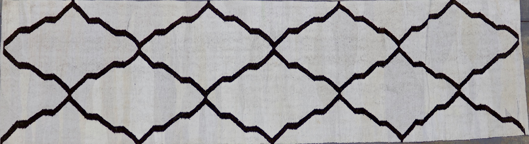 This runner is a reclaimed piece cut from a larger, modern Turkish piece. With its high-quality craftsmanship, ogee pattern and natural color palette, the rug has a fresh aesthetic with a minimalist appeal.