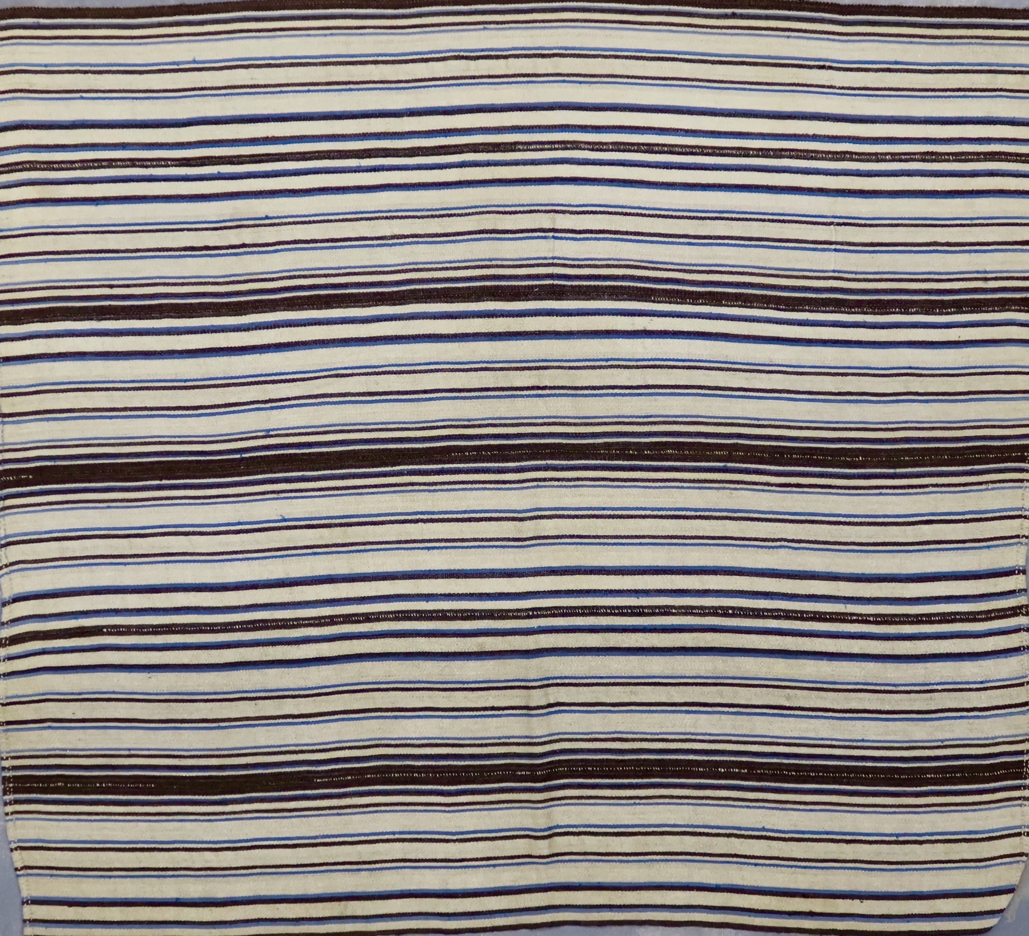 This rug is a vintage flatweave kilim piece from Turkey. Kilim weaving is a centuries-old technique that makes for flatweave, no-pile pieces that are both aesthetically appealing and functional. Traditionally handmade in countries of the former Persian Empire, kilims are the basis of many different styles born from the region. This piece in paticular is from the Konya region of Turkey, an area known for its craftsmanship of rugs and textiles. No dyes or chemicals were used in the construction of this piece, as it was originally used as a minimalist room divider, tent wall or floor covering. The high quality, all-natural appearance of the sheep wool makes for a very organically stunning piece.