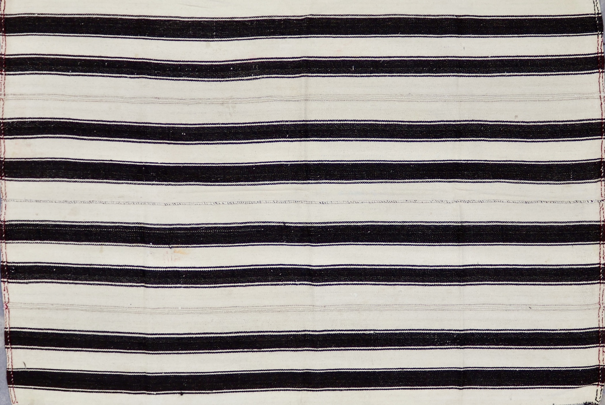 This rug is a vintage flatweave kilim piece from Turkey. Kilim weaving is a centuries-old technique that makes for flatweave, no-pile pieces that are both aesthetically appealing and functional. Traditionally handmade in countries of the former Persian Empire, kilims are the basis of many different styles born from the region. This piece in paticular is from the Konya region of Turkey, an area known for its craftsmanship of rugs and textiles. No dyes or chemicals were used in the construction of this piece. This piece was originally used as a minimalist room divider, tent wall or floor covering. The high quality, all-natural appearance of the sheep wool makes for a very organically stunning piece.