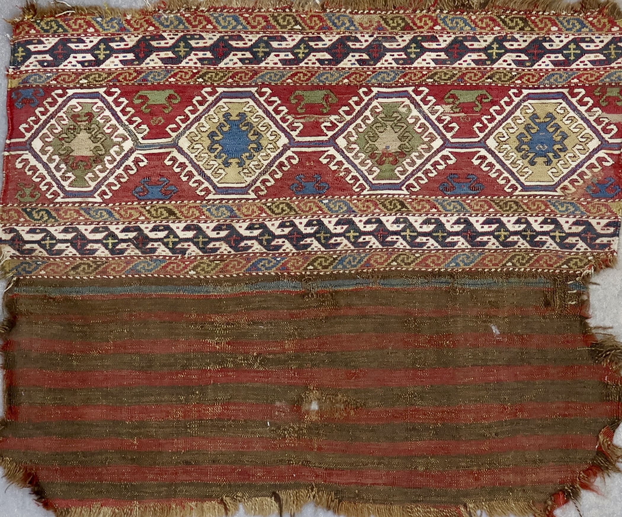 KL8262 ANTIQUE 1850s CAUCASIAN SUMAK CRADLE TEXTILE 2'8" X 3'3"